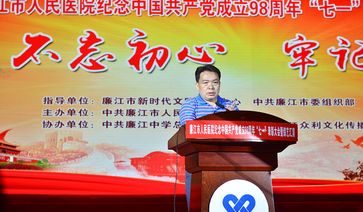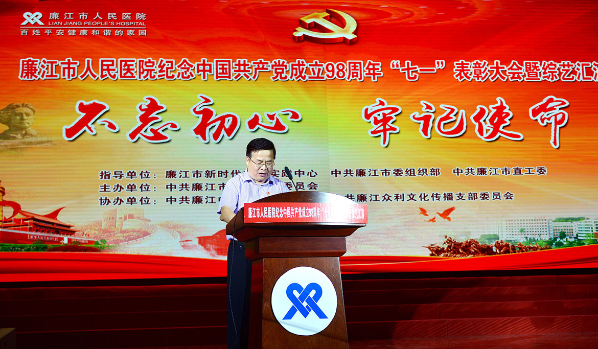 6月28日晚,人民醫(yī)院在廉江劇院舉辦“不忘初心,牢記使命”紀(jì)念中國共產(chǎn)黨成立98周年“七一”表彰大會暨綜藝匯演晚會。市人大常委會主任、黨組書記李世東,市委常委、市政府黨組成員木聲隆,市人大常委會黨組副書記、常務(wù)副主任、市總工會主席李玲,市政協(xié)副主席、黨組成員陳亞德,市政協(xié)副主席林炳坤,市政協(xié)副主席王麗峰等領(lǐng)導(dǎo)應(yīng)邀參加觀看演出和頒獎(jiǎng)活動(dòng),市婦聯(lián)、團(tuán)市委、人社局、衛(wèi)健局、醫(yī)保局、交通局、檢察院、法院、財(cái)政局、廉江中學(xué)、廉江衛(wèi)校等單位領(lǐng)導(dǎo)應(yīng)邀參加觀看演出。