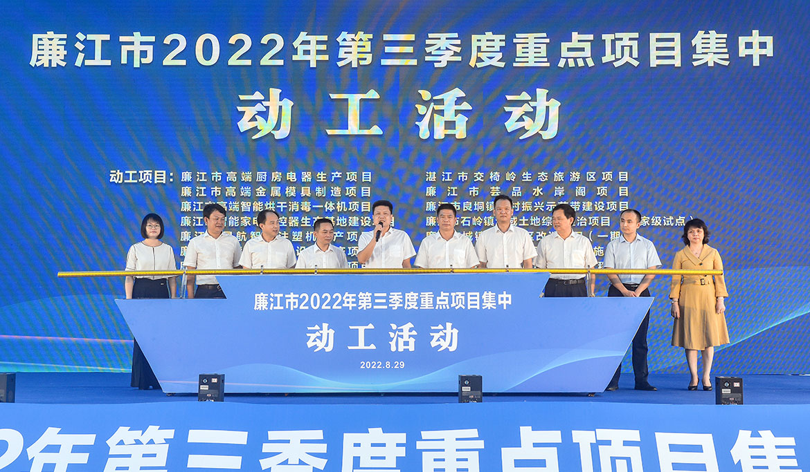 8月29日上午,我市舉行2022年第三季度重點項目集中動工活動。這批項目的動工建設(shè),既是廉江市招商引資成果的一次集中展示,也是搶抓第三季度施工建設(shè)黃金期的一次動員號令,為廉江高質(zhì)量發(fā)展注入更強勁的動力。