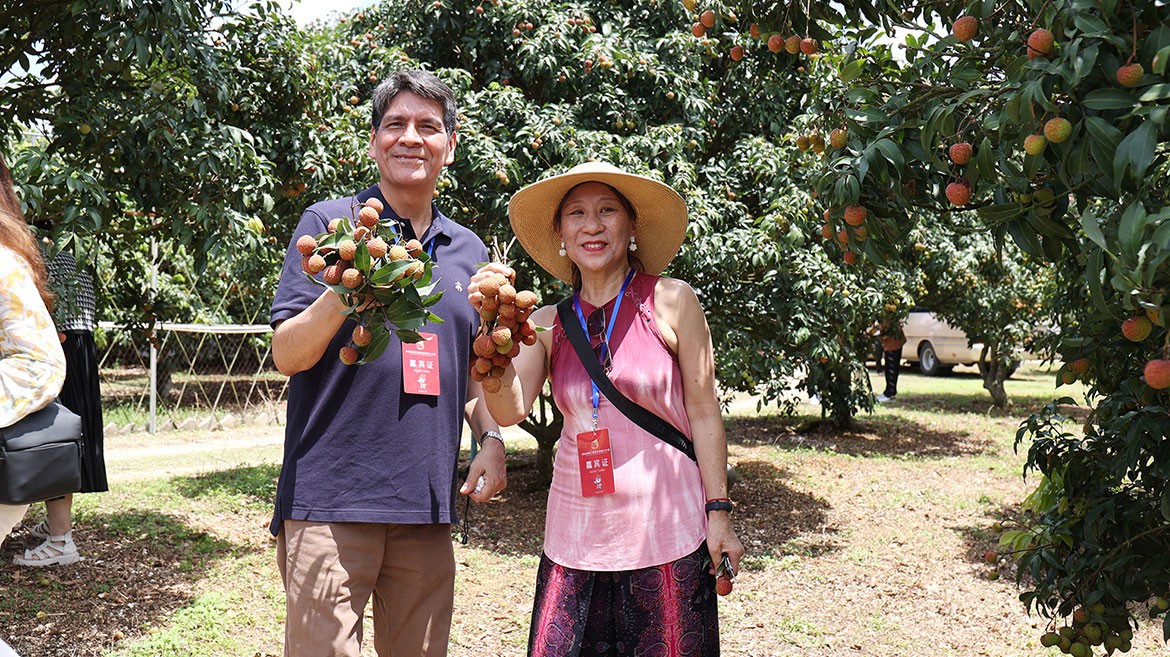 廉江市領(lǐng)導(dǎo)帶領(lǐng)外國(guó)駐穗領(lǐng)團(tuán)采摘荔枝