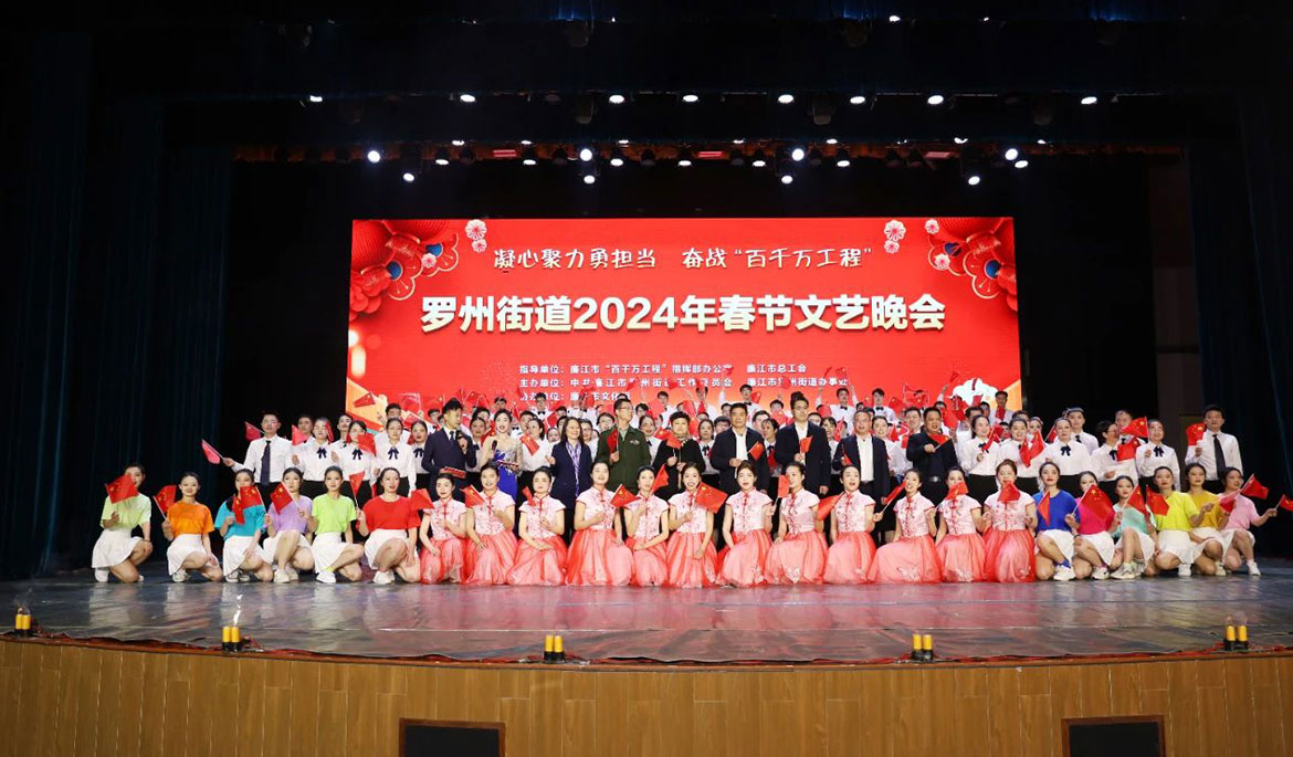 1月30日晚,主題為“凝心聚力勇?lián)?dāng)   奮戰(zhàn)‘百千萬工程’”的羅州街道2024年春節(jié)文藝晚會(huì)在廉江劇院舉行,以豐富多彩的藝術(shù)形式,生動(dòng)展示了羅州街道干部群眾在全力推動(dòng)“百千萬工程”走深走實(shí)中勇于擔(dān)當(dāng)、爭創(chuàng)一流的精神風(fēng)貌。