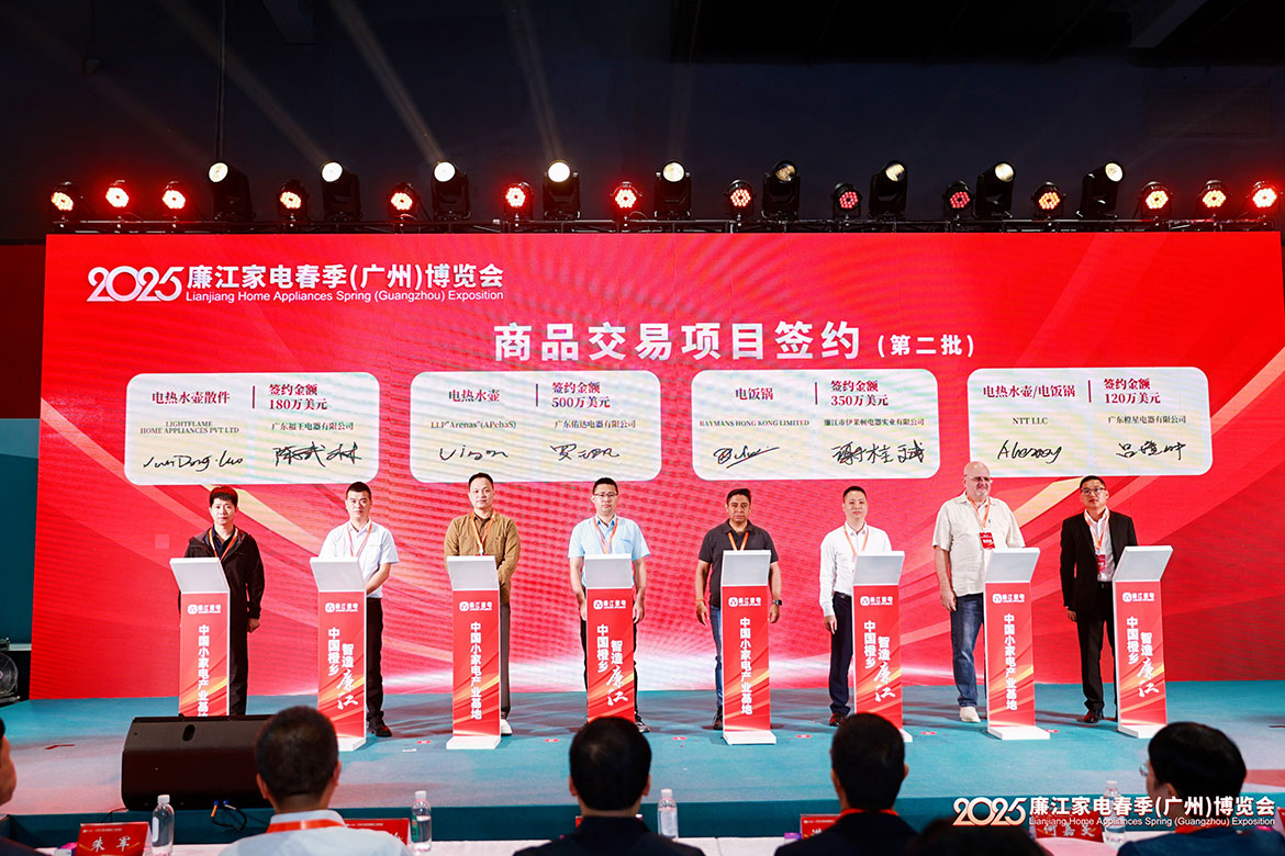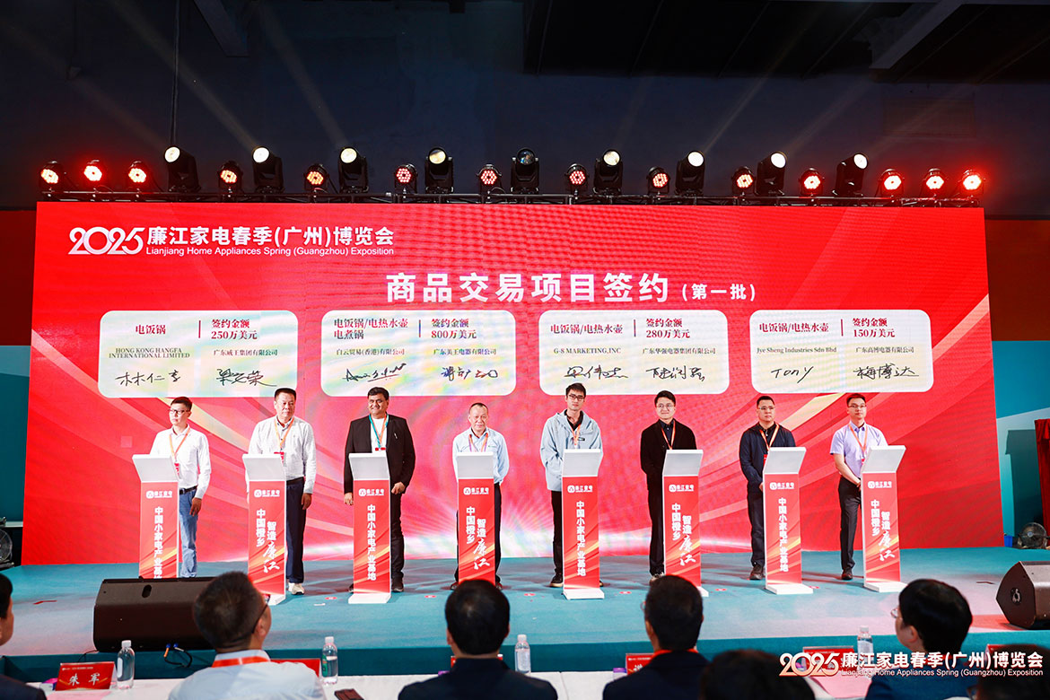 “公司每年需要采購上百萬臺電飯煲和電熱水壺,廉江家電工廠活力足,產(chǎn)品出貨快且好,這是我們與廉江家電企業(yè)合作五年多的原因?!爆F(xiàn)場與廣東橙星電器有限公司簽約120萬美元訂單的俄羅斯客商Alexey Snizhko說。